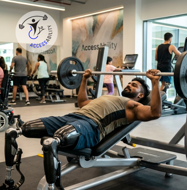 AccessAbility is a pioneering upcoming facility in Chennai, enabling Health and Fitness opportunities to the differently abled members of the society through high level of professionalism and empathetic customer experience and best in class international standards in specially designed gyms with customized exercise equipment and well trained staff, in India for the very first time.